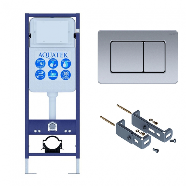 Инсталляция для подвесного унитаза Aquatek Standart 37 INS-0000017, кнопка смыва хром + крепеж купить с доставкой. 100% Оригинал. Гарантия!