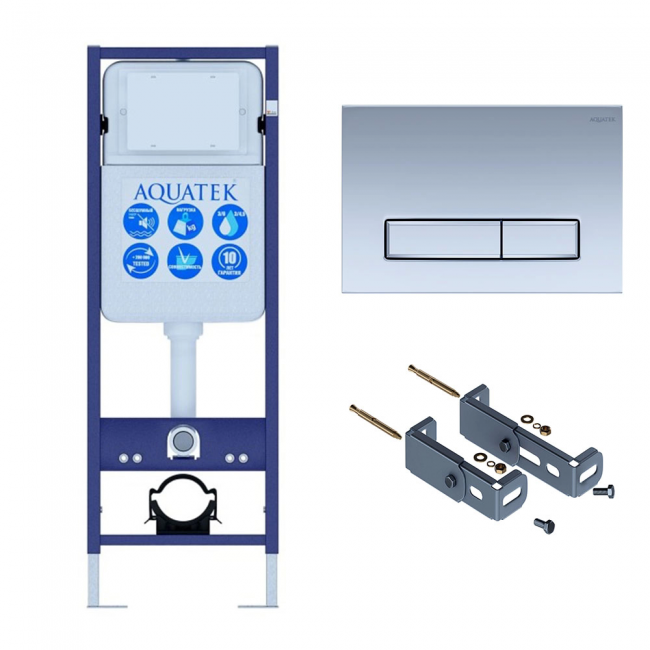 Инсталляция для подвесного унитаза Aquatek Standart 37 INS-0000017, кнопка смыва хром + крепеж купить с доставкой. 100% Оригинал. Гарантия!
