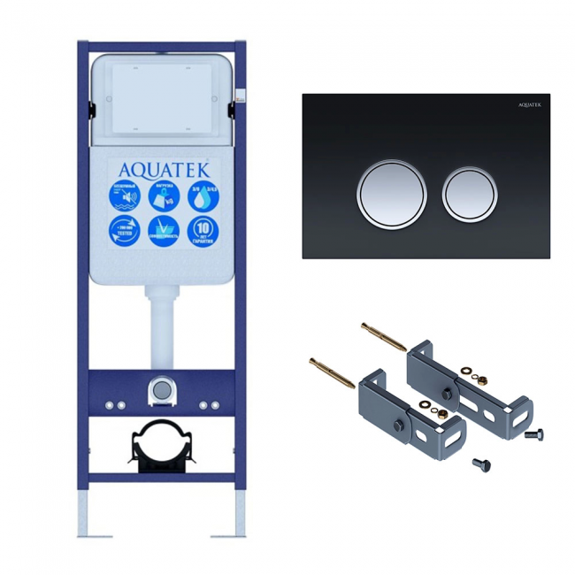 Инсталляция для подвесного унитаза Aquatek Standart 37 INS-0000017, кнопка смыва черная + крепеж купить с доставкой. 100% Оригинал. Гарантия!