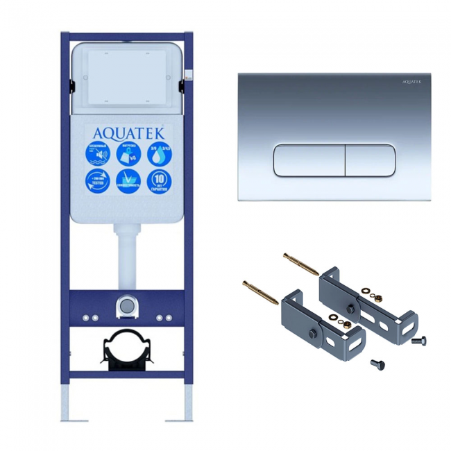 Инсталляция для подвесного унитаза Aquatek Standart 37 INS-0000017, кнопка смыва хром + крепеж купить с доставкой. 100% Оригинал. Гарантия!