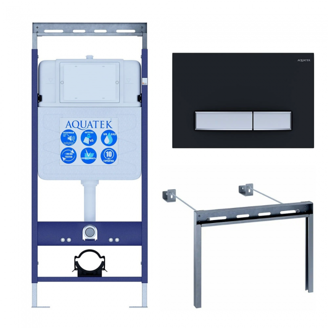 Инсталляция для подвесного унитаза Aquatek Easy Fix 50 INS-0000010, кнопка смыва черная + крепеж купить с доставкой. 100% Оригинал. Гарантия!