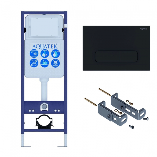 Инсталляция для подвесного унитаза Aquatek Standart 37 INS-0000017, кнопка смыва черная + крепеж купить с доставкой. 100% Оригинал. Гарантия!