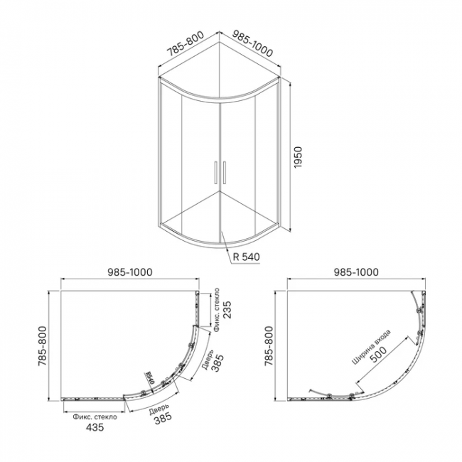 Душевое ограждение для ванной комнаты Zodiac асимметричной округлой формы с регулируемым размером 985-1000х785-800х1950 мм, что позволяет сгладить неровности стен до 15 мм. - Алюминиевый глянцевый профиль обеспечивает стабильность и надежность всей конструкции. - Прозрачное закаленное стекло толщиной 6 мм выдерживает случайные удары, что делает перегородку надежной и безопасной в каждодневном использовании. - Благодаря водоотталкивающему покрытию вода не задерживается на стеклах ограждения, что исключает образование известкового налета и упрощает уход. - За счет надежных двойных роликов сверху и снизу дверки двигаются плавно и бесшумно в течение всего срока службы. - Дверки ограждения легко снимаются и устанавливаются обратно для упрощения процесса уборки – для этого надо нажать на кнопку на нижнем ролике, снять его и затем аккуратно снять дверку. - Удобная ручка из сплава металлов. - Гарантия на душевые ограждения IDDIS® — 2 года, чтобы вы были уверены в их надежности и высоком качестве.