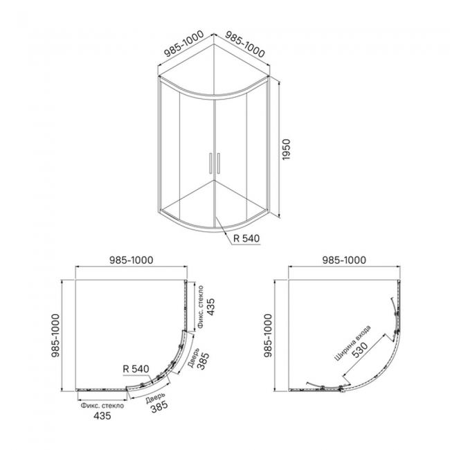 Душевое ограждение для ванной комнаты Zodiac в форме четверти круга с регулируемым размером 985-1000х985-1000х1950 мм, что позволяет сгладить неровности стен до 15 мм. - Алюминиевый глянцевый профиль обеспечивает стабильность и надежность всей конструкции. - Прозрачное закаленное стекло толщиной 6 мм выдерживает случайные удары, что делает перегородку надежной и безопасной в каждодневном использовании. - Благодаря водоотталкивающему покрытию вода не задерживается на стеклах ограждения, что исключает образование известкового налета и упрощает уход. - За счет надежных двойных роликов сверху и снизу дверки двигаются плавно и бесшумно в течение всего срока службы. - Дверки ограждения легко снимаются и устанавливаются обратно для упрощения процесса уборки – для этого надо нажать на кнопку на нижнем ролике, снять его и затем аккуратно снять дверку. - Удобная ручка из сплава металлов. - Гарантия на душевые ограждения IDDIS® — 2 года, чтобы вы были уверены в их надежности и высоком качестве.
