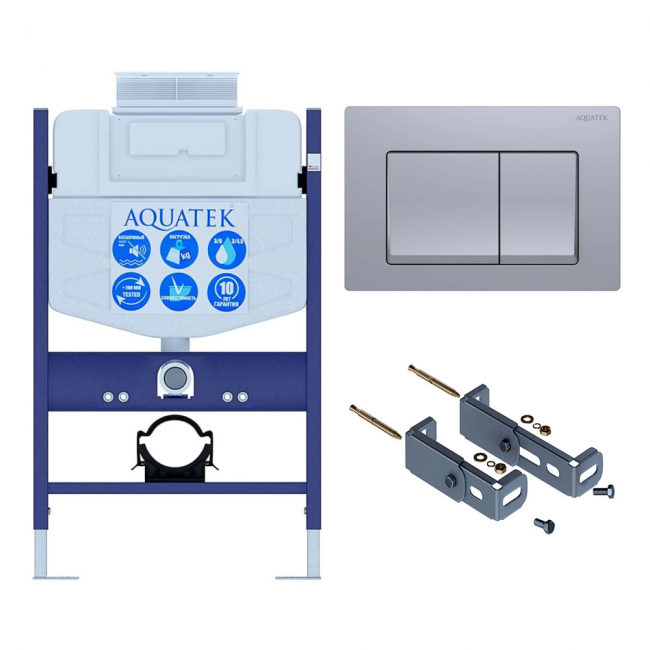 Инсталляция для подвесного унитаза с верхней кнопкой смыва Aquatek INS-0000018, кнопка смыва хром + крепеж купить с доставкой. 100% Оригинал. Гарантия!