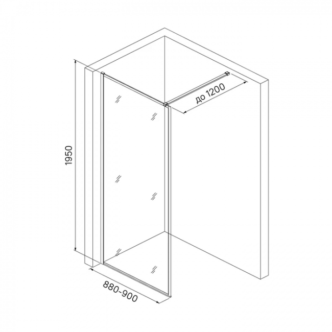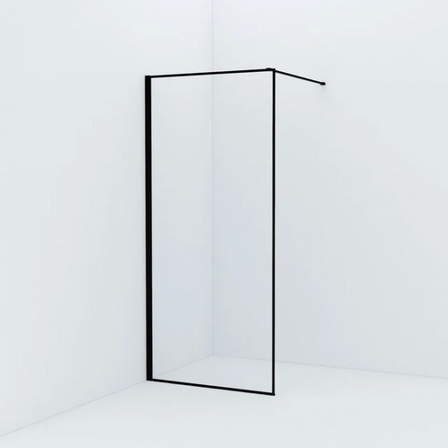 Душевая перегородка Walk In для ванной комнаты, 880-900х1950мм, регулируемый размер, позволяющий сгладить неровность стен (20мм). Черный матовый цвет, алюминиевый профиль, прозрачное закаленное стекло 8мм.