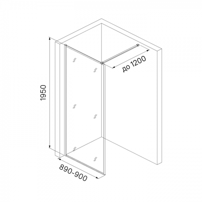 - Перегородка Walk In имеет регулируемый размер 880-900х1950 мм, позволяющий сгладить неровность стен до 20 мм.