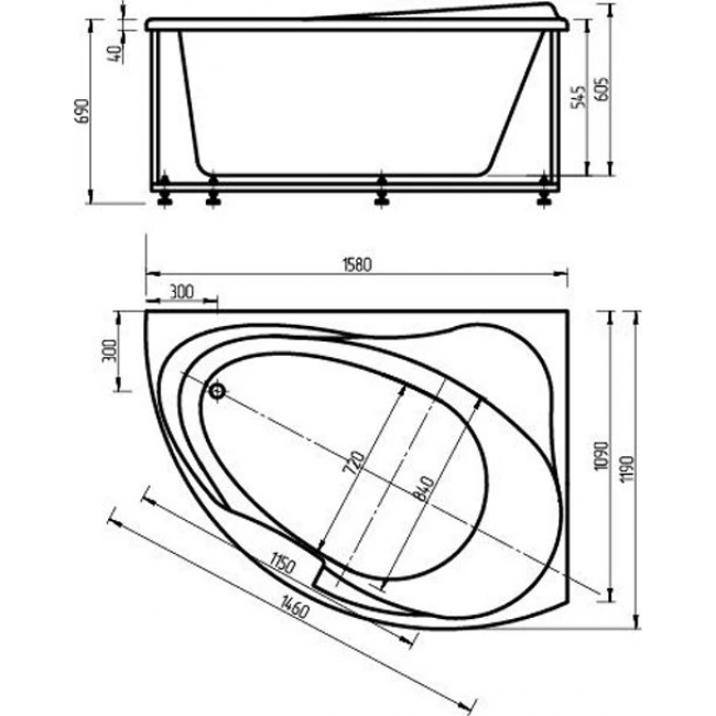 Акриловая ванна АКВАТЕК Альтаир 160х110 (левая, с фронтальным экраном, без гидромассажа) ALT160-0000067 купить с доставкой. 100% Оригинал. Гарантия!