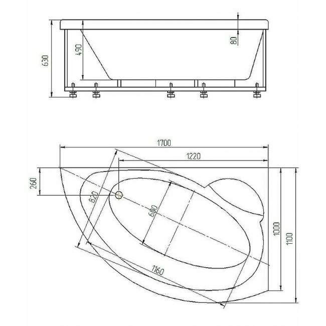 - Ванна устанавливается на каркас, который поставляется в комплекте