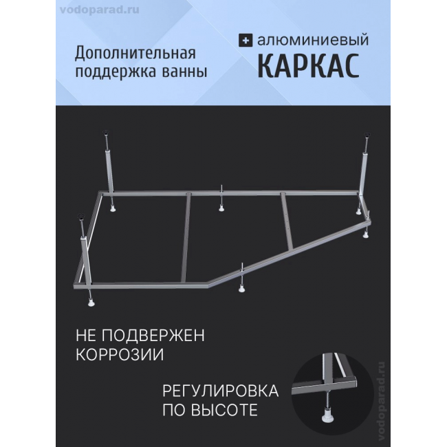 - Ванна имеет вклеенный неразборный каркас