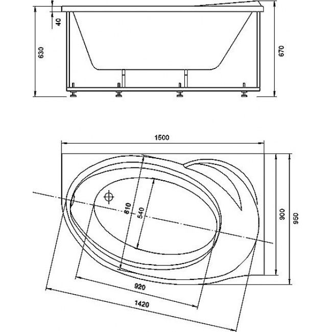 - Ванна устанавливается на каркас, который поставляется в комплекте