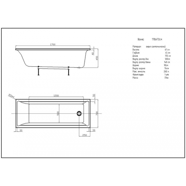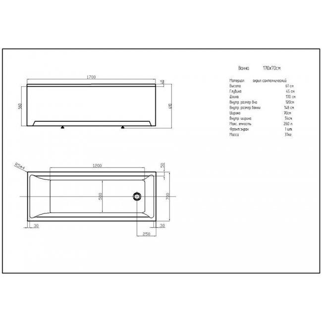 Акриловая ванна АКВАТЕК Eco-friendly Лайма 170х70 LAI170-0000001 купить с доставкой. 100% Оригинал. Гарантия!