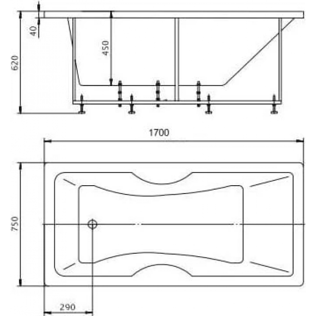 - Ванна устанавливается на каркас, который поставляется в комплекте