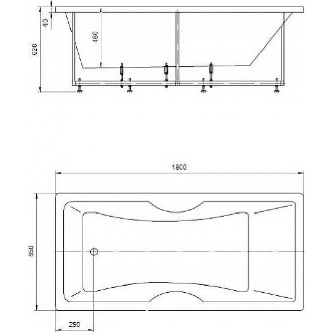 - Ванна устанавливается на каркас, который поставляется в комплекте