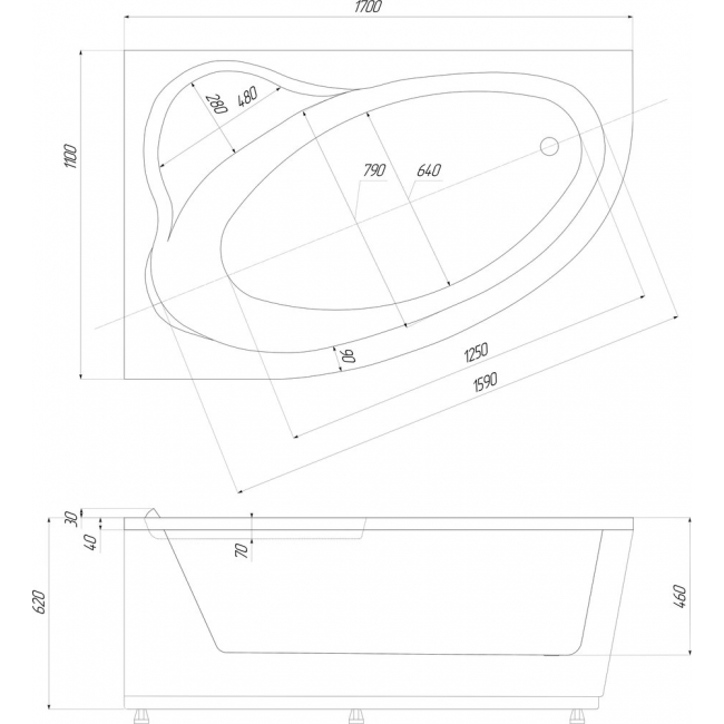 Акриловая ванна АКВАТЕК Фиджи 170 FID170-0000001 левая купить с доставкой. 100% Оригинал. Гарантия!