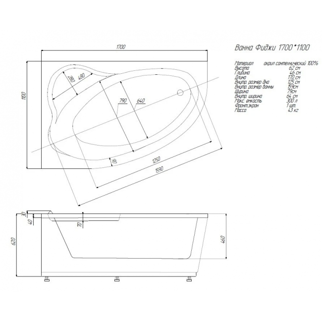 Акриловая ванна Акватек Фиджи 170x110 FID170-0000005 правая, без гидромассажа, с фронтальным экраном (вклеенный каркас) купить с доставкой. 100% Оригинал. Гарантия!