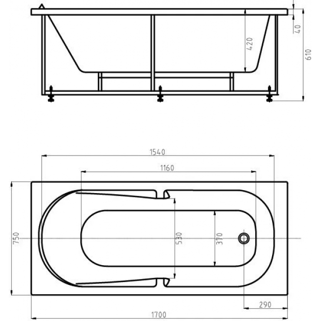 - Ванна устанавливается на каркас, который поставляется в комплекте