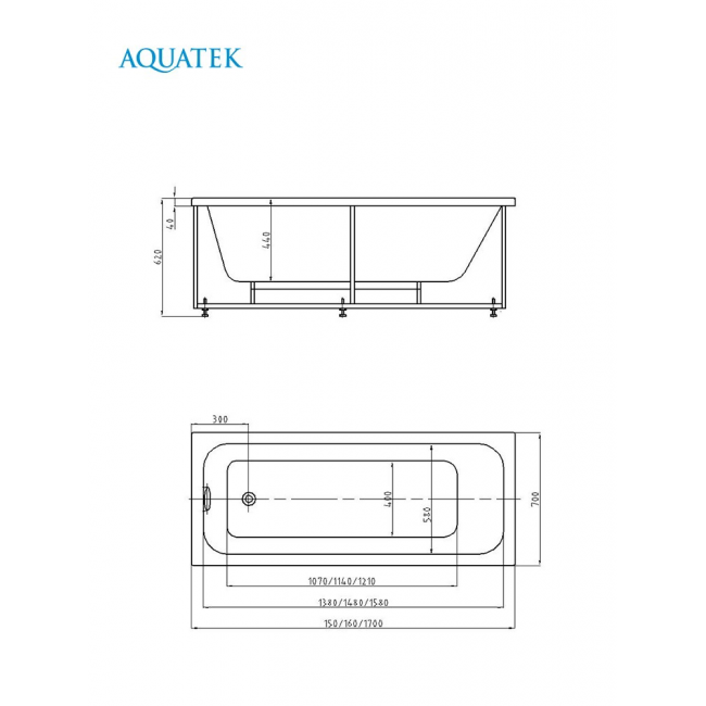 Акриловая ванна АКВАТЕК Мия 170x70 MIY170-0000004 (без гидромассажа) купить с доставкой. 100% Оригинал. Гарантия!