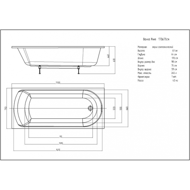 | Длина, см | 170 |