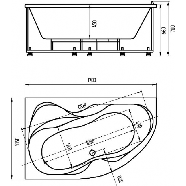 - Ванна устанавливается на каркас, который поставляется в комплекте