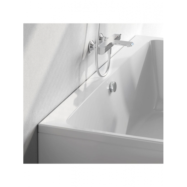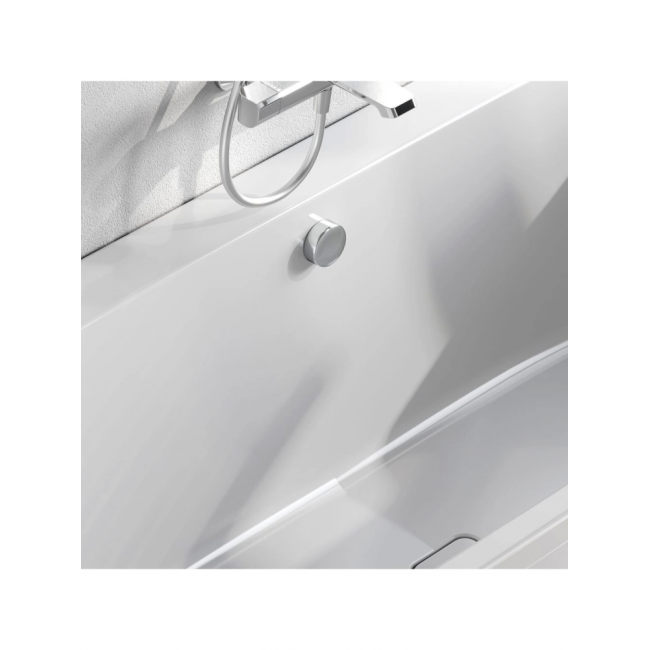 Характерный дизайн: сочетание широкого борта с одной стороны с ультра-тонким бортом с другой стороны создает неповторимую квинтэссенцию стиля. А декоративная заглушка слива, повторяющая форму самой ванны, станет яркой деталью в интерьере.