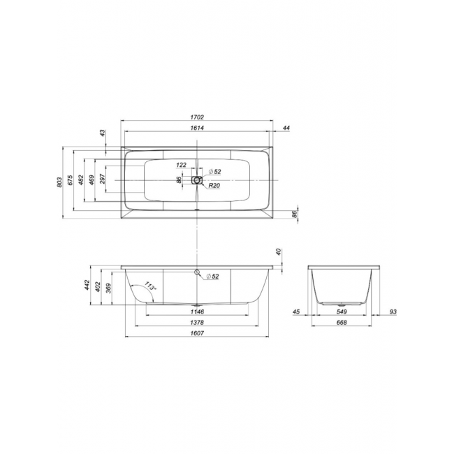 Дополнительные аксессуары для ванн Func: каркас W84A-170-80W-R, фронтальная панель W84A-170-80W-P, слив-перелив W90A-1000-OFL - приобретаются отдельно.