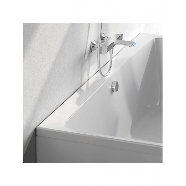 Характерный дизайн: сочетание широкого борта с одной стороны с ультра-тонким бортом с другой стороны создает неповторимую квинтэссенцию стиля. А декоративная заглушка слива, повторяющая форму самой ванны, станет яркой деталью в интерьере.