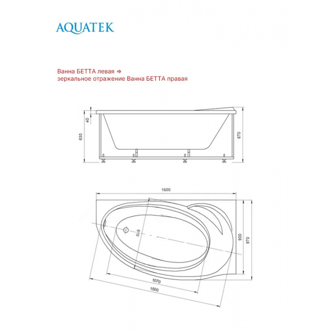 Акриловая ванна Aquatek Бетта 160x97 L BET160-0000169 левая купить с доставкой. 100% Оригинал. Гарантия!