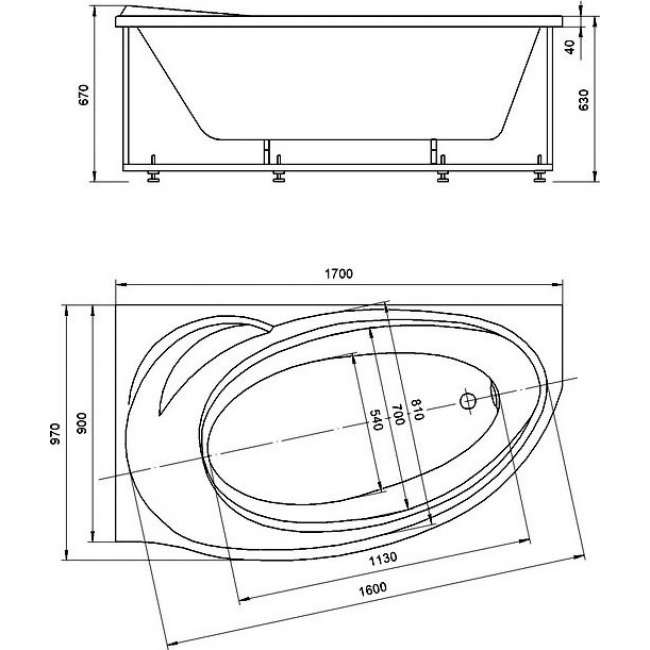 - Ванна устанавливается на каркас, который поставляется в комплекте