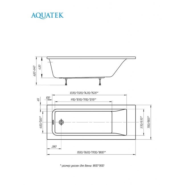 - Разнообразие форм и размеров — ассортимент Aquatek позволяет выбрать ванну как для компактных, так и просторных помещений, классических прямоугольных или ассиметричных форм.