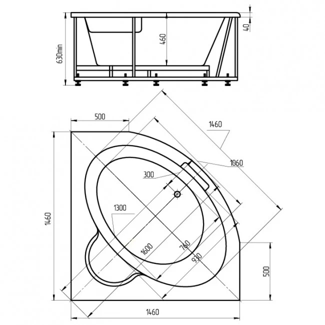 - Ванна устанавливается на каркас, который поставляется в комплекте