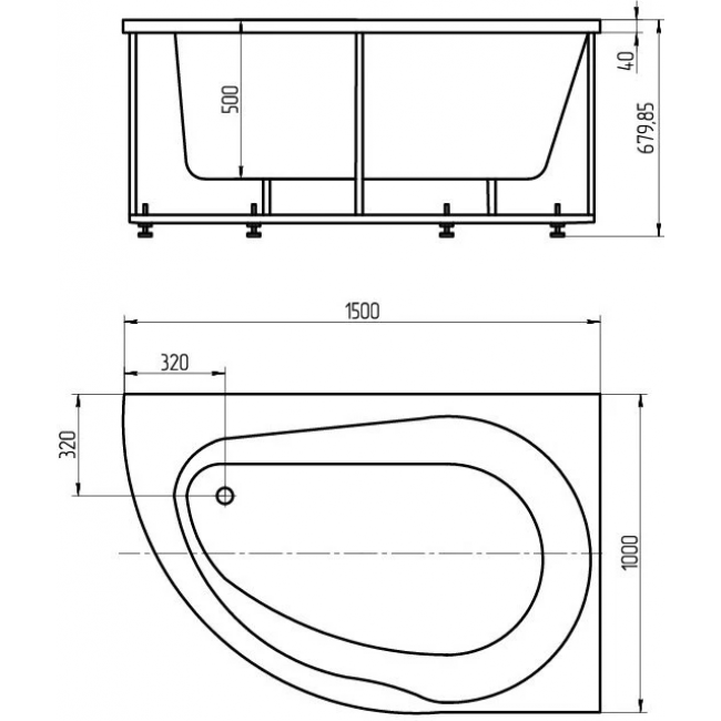 - Ванна устанавливается на каркас, который поставляется в комплекте