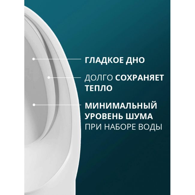 Акриловая ванна принимает температуру воды, а это значит, что она быстро нагревается и долго не остывает. Звукоизоляционный эффект акрила поглощает шум потока при наборе воды. Гладкая, но при этом нескользкая поверхность обеспечит безопасность водных процедур. 100% литьевой сантехнический акрил не впитывает грязь, препятствует размножению бактерий и легко моется. Такая ванна практична и долговечна. Дно ванны усиленно листом ДСП, дополнительное армирование стекловолокном обеспечивает дополнительную прочность изделия. Акриловая ванна выдерживает большие нагрузки, не боится ударов и не желтеет, сохраняя свой белый цвет.