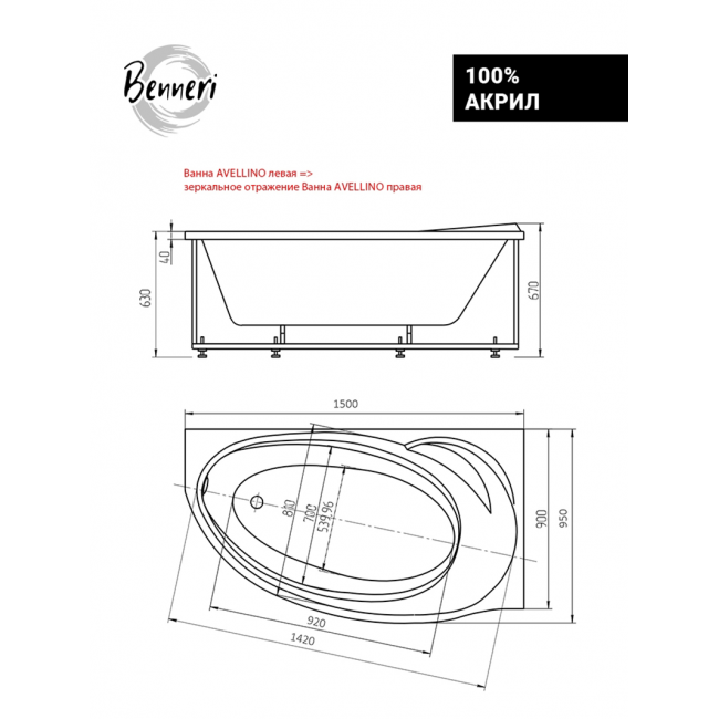 Акриловая ванна Benneri Avellino 150x95 BE.AV150L.UK.FP.SL.ch левая купить с доставкой. 100% Оригинал. Гарантия!