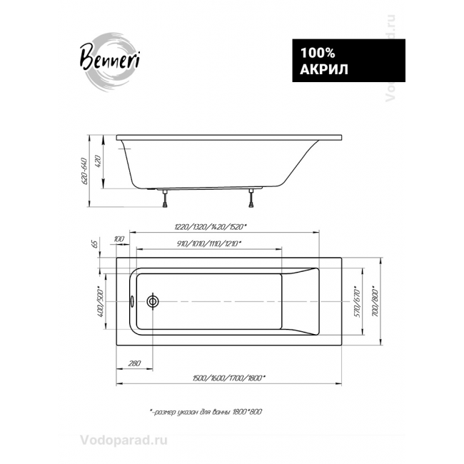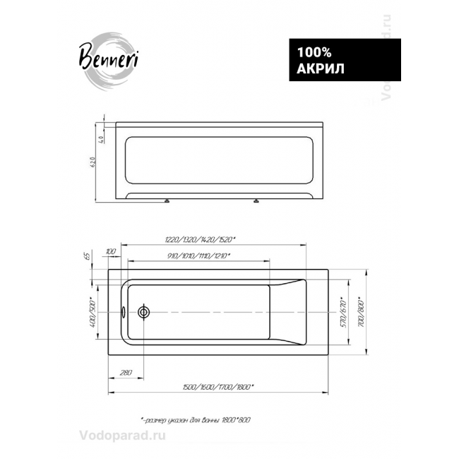 Акриловая ванна Benneri Como 150x70 BE.Co150.01.UK.FP.SL.ch прямоугольная купить с доставкой. 100% Оригинал. Гарантия!