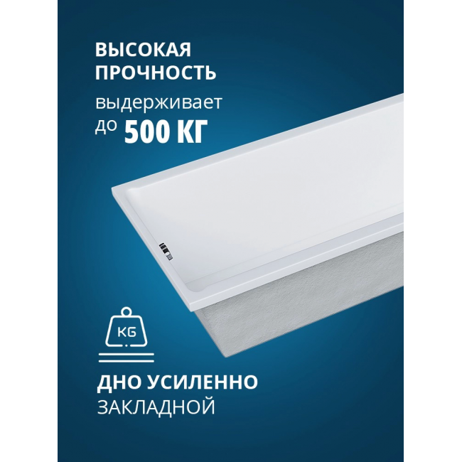 Материал ванны - 100% литьевой сантехнический акрил. Дно ванны усилено закладной из ДСП, дополнительное армирование жестким полиуретаном. Акрил - экологически чистый антибактериальный материал, не впитывает грязь, сохраняет первоначальную белизну и легко моется. Акрил не подвержен деформации, обладает высокой прочностью. При необходимости - легко реставрируется. Акриловая ванна долго сохраняет тепло, обладает минимальным уровнем шума при наборе воды и нескользкой поверхностью. Гарантия на ванну 20 лет, срок службы - не ограничен.