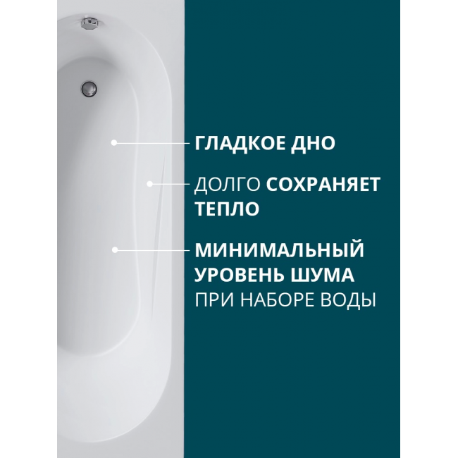 Материал ванны - 100% литьевой сантехнический акрил. Дно ванны усилено закладной из ДСП, дополнительное армирование жестким полеуретаном. Акрил - экологически чистый антибактериальный материал, не впитывает грязь, сохраняет первоначальную белизну и легко моется. Акрил не подвержен деформации, обладает высокой прочностью. При необходимости - легко реставрируется. Акриловая ванна долго сохраняет тепло, обладает минимальным уровнем шума при наборе воды и нескользкой поверхностью. Ножки с регулировкой по высоте позволяют устанавливать ванну на неровный пол. Ножки не подвержены коррозии, выдерживают все заявленные нагрузки, легко и просто устанавливаются. Гарантия на ванну 20 лет, срок службы - не ограничен. Толщина акрила 4 мм. Диаметр отверстий под слив-перелив: 51 мм. Подойдет любой стандартный слив-перелив.