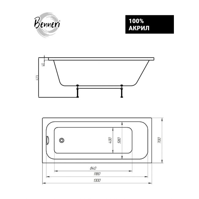 Акриловая ванна Benneri Modena 130x70 BE.Mo130.01 прямоугольная купить с доставкой. 100% Оригинал. Гарантия!