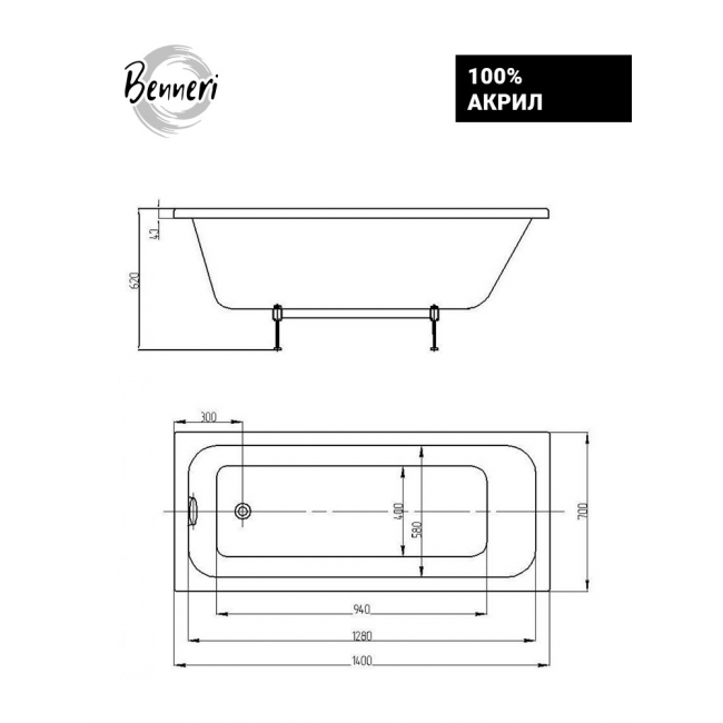Акриловая ванна Benneri Modena 140x70 BE.Mo140.01 прямоугольная купить с доставкой. 100% Оригинал. Гарантия!