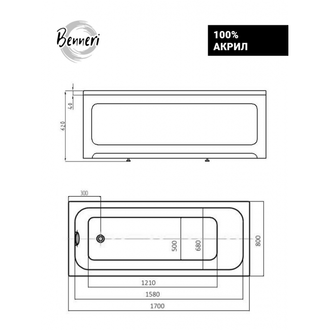 Акриловая ванна Benneri Modena 170x80 BE.Mo17080.UK.FP прямоугольная купить с доставкой. 100% Оригинал. Гарантия!