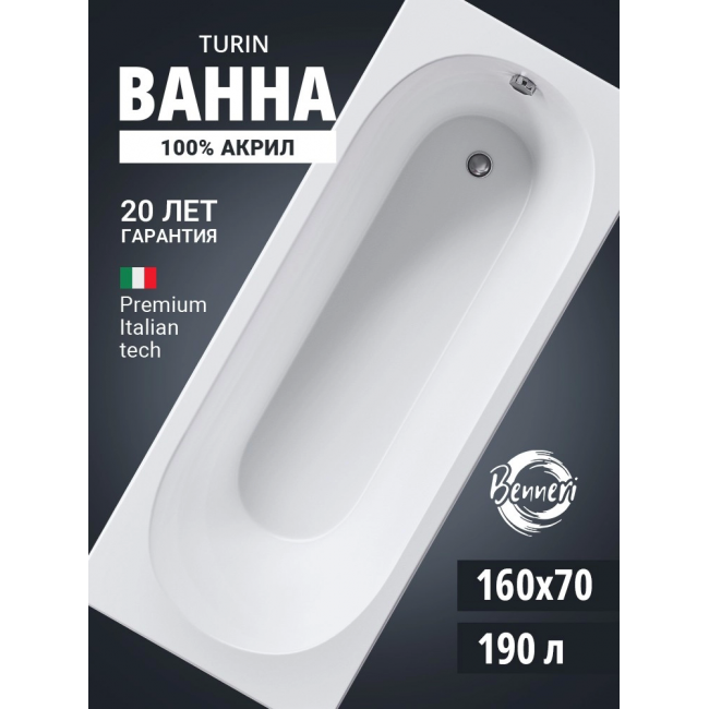 Акриловая ванна Benneri Turin 160х70 BE.Tu160.01 прямоугольная купить с доставкой. 100% Оригинал. Гарантия!
