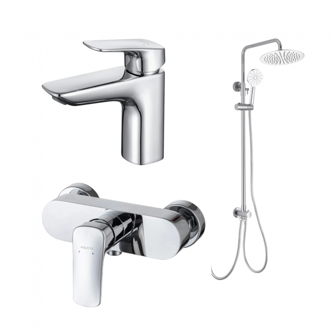 | Комплектация | 1. Смеситель для раковины 2. Смеситель для душа 3. Душевая система |