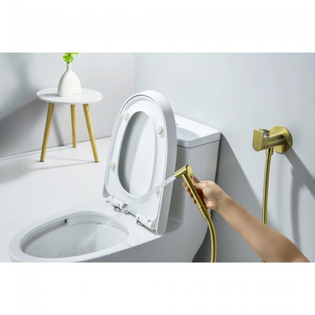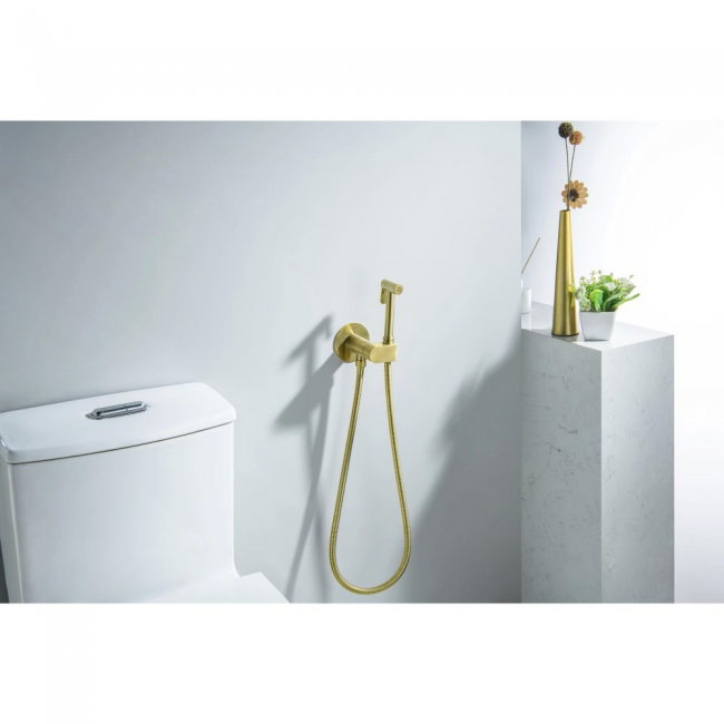 AQ1024BG ОБЕРОН комплект для гигиенического душа встроенный (смеситель + гигиеническая лейка + шланг), шлиф. золото купить с доставкой. 100% Оригинал. Гарантия!