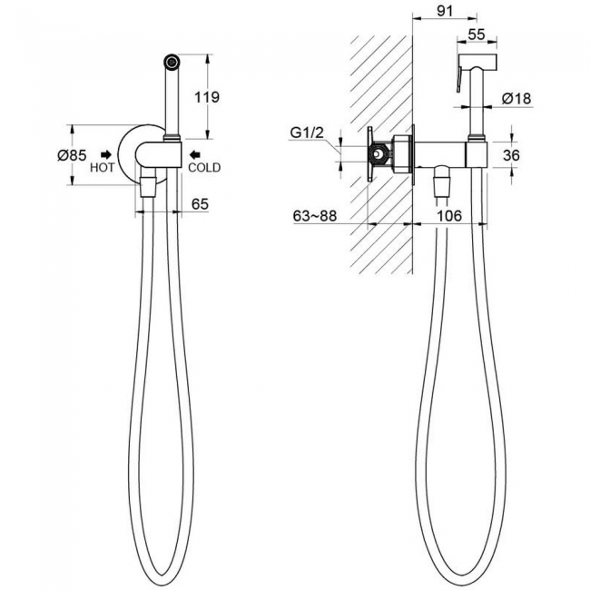Таким образом, чтобы отрегулировать напор и температуру воды гигиенического душа, просто извлеките лейку из держателя и поверните ручку держателя на смесителе до достижения желаемых значений. Это очень удобно и легко. После использования гигиенического душа сначала поверните ручку держателя лейки на смесителе в положение "закрыто", а затем поставьте лейку обратно в держатель.