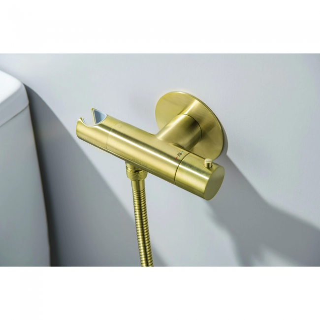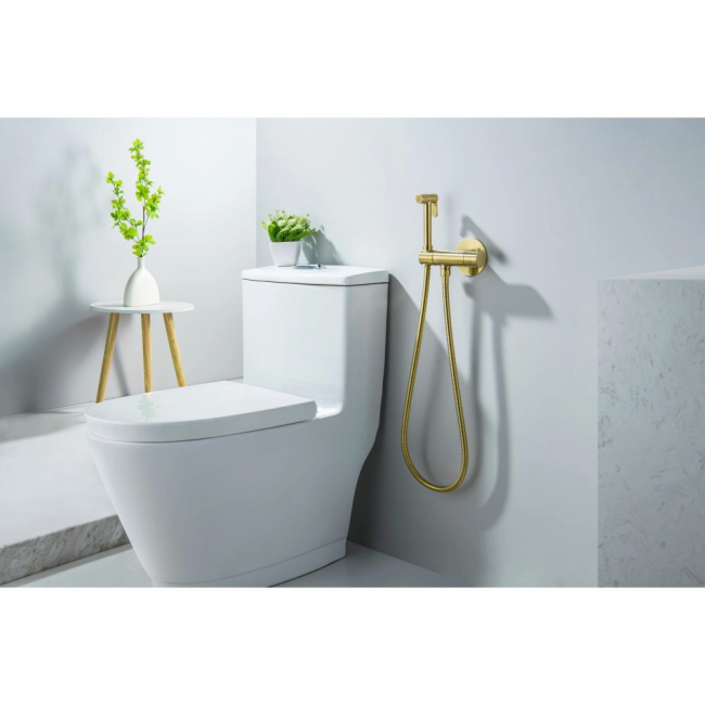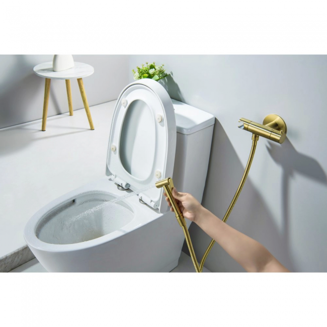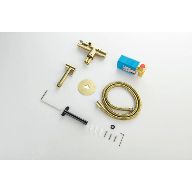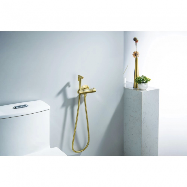 AQ1027BG ОБЕРОН комплект для гигиенического душа термостатический встроенный (смеситель + гигиеническая лейка + шланг), шлиф. золото купить с доставкой. 100% Оригинал. Гарантия!