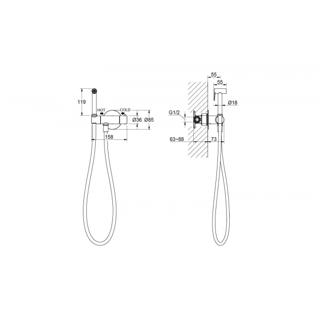 | Комплектация | 1. Смеситель для душа (внешняя и скрытая часть) 2. Душевой гарнитур: гигиеническая лейка, шланг, шланговое подсоединение с держателем 3. Декоративные накладки на стену из нержавеющей стали 2,5 мм |