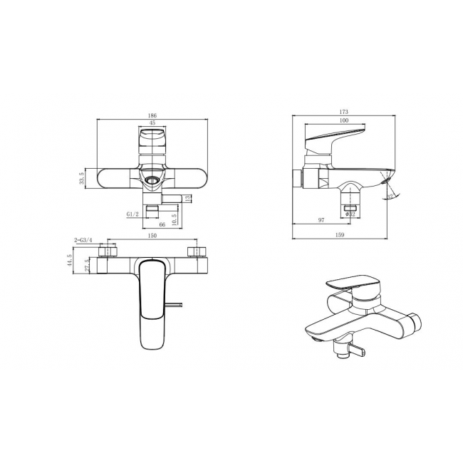 однорычажная система регулировки силы струи и температуры воды; цельный корпус смесителя снижает вероятность протечек; поворотный переключатель на душ; лейка и шланг в комплект не входят;