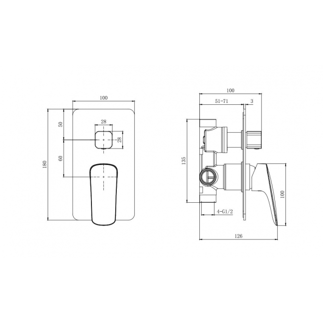 | Комплектация | 1. Смеситель для ванны (внешняя и скрытая часть) 2. Душевой набор 3. Верхний душ настенный 4. Шланговое подсоединение |