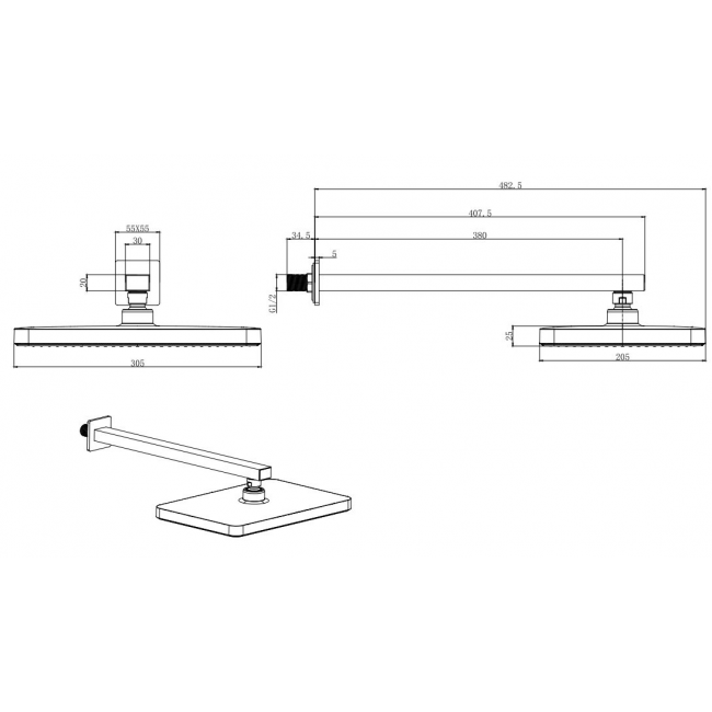 | Комплектация | 1. Смеситель для ванны (внешняя и скрытая часть) 2. Душевой гарнитур 3jet 3. Верхний душ настенный 4. Шланговое подсоединение |