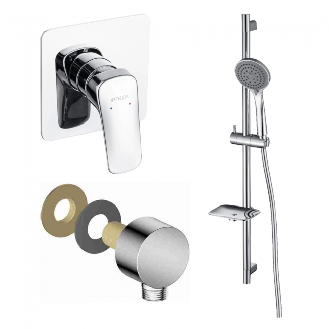 | Комплектация | 1. Смеситель для душа (внешняя и скрытая часть) 2. Душевой гарнитур 3jet 3. Шланговое подсоединение |